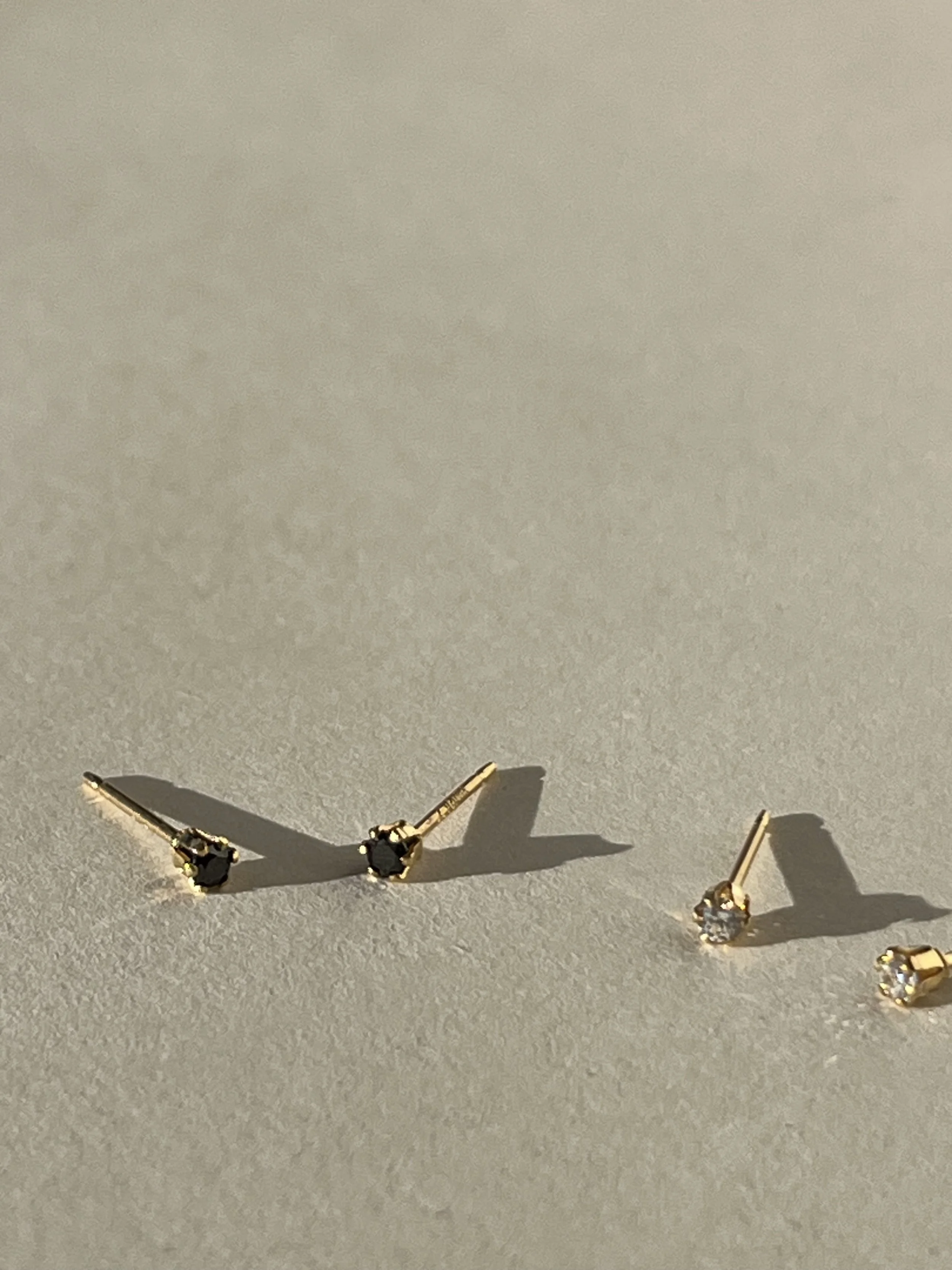 Photo 7-10 - Model is wearing the yellow gold-filled black cubic zirconia threaders in her first ear piercing, and the black Itty Bitty Crystal Studs in her second ear piercing(separate listing linked below.)