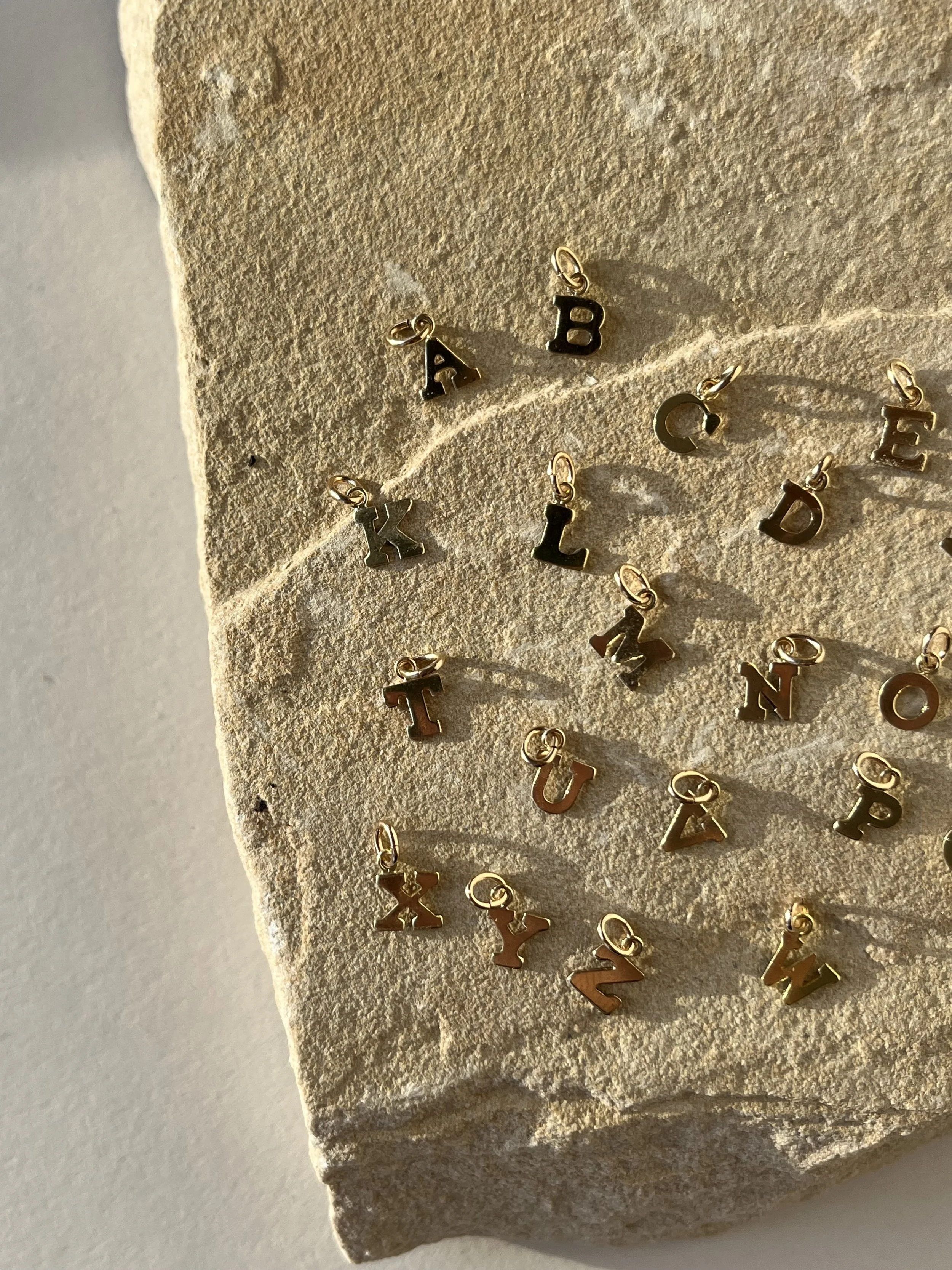Choose between one of the twenty-six block letter charms. The block letter charm is then added to your choice of a 16”, 18”, or 20” sterling silver or yellow gold-filled chain.