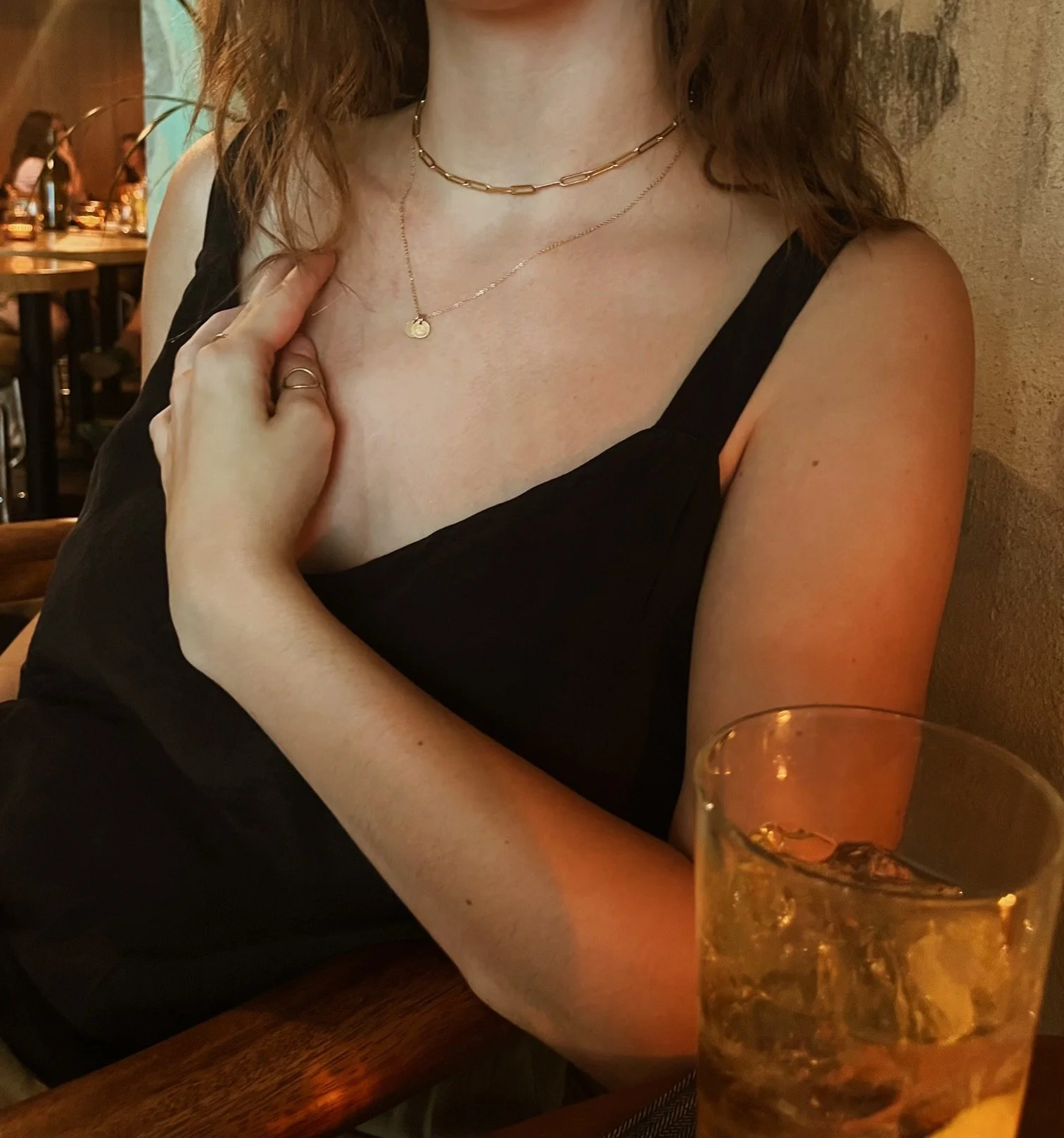 Photo 6 - Model is wearing the 14” Original Large Link Paperclip Necklace - Yellow Gold-filled, with the 18” Zodiac Charm Necklace - Yellow Gold-filled with two 7mm charms(separate listing linked below.)