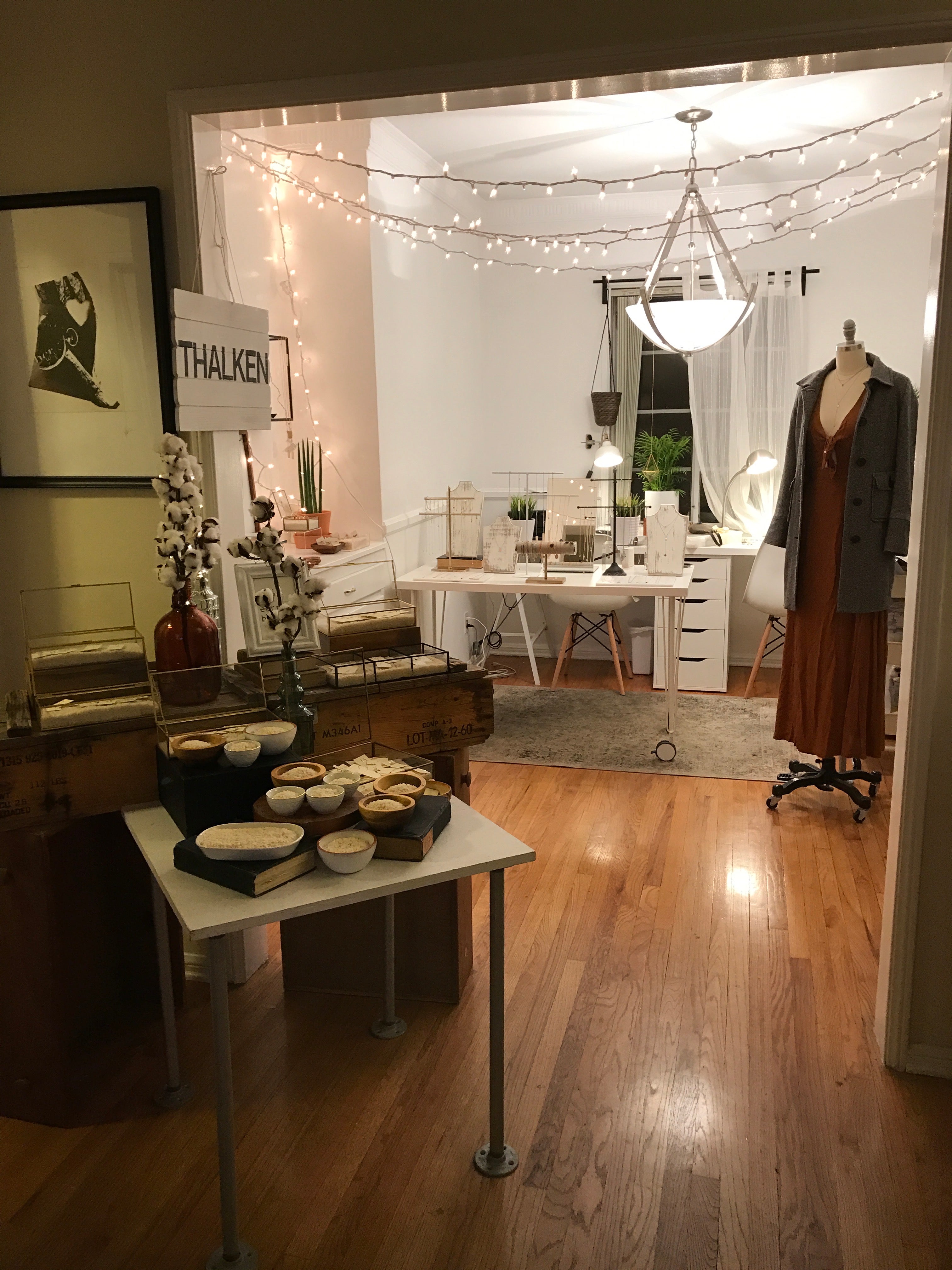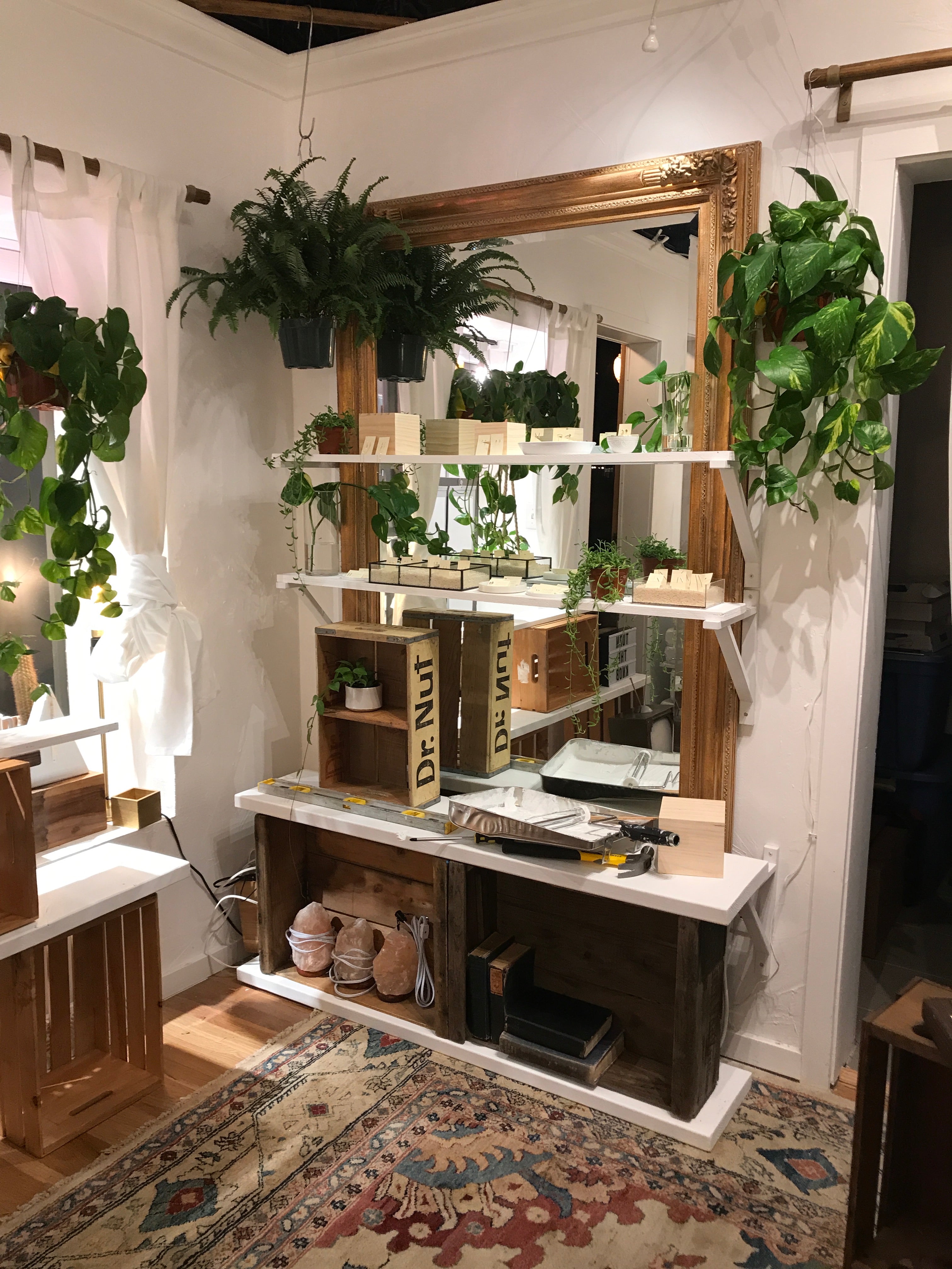 Thursday through Sunday, Hana and Will would transform the office into a store. Sunday night, they would break everything down and restore it to the previous tenant’s office setup, where Sloane would conduct her business Monday through Wednesday. This cycle continued every week for about eight months. A huge shout-out to Sloane for being so flexible! It was a lot of work, but it was a great way to experiment with having a storefront. It helped them gauge what they could afford to take on and whether this was something they truly wanted. As you might have guessed, they loved it.