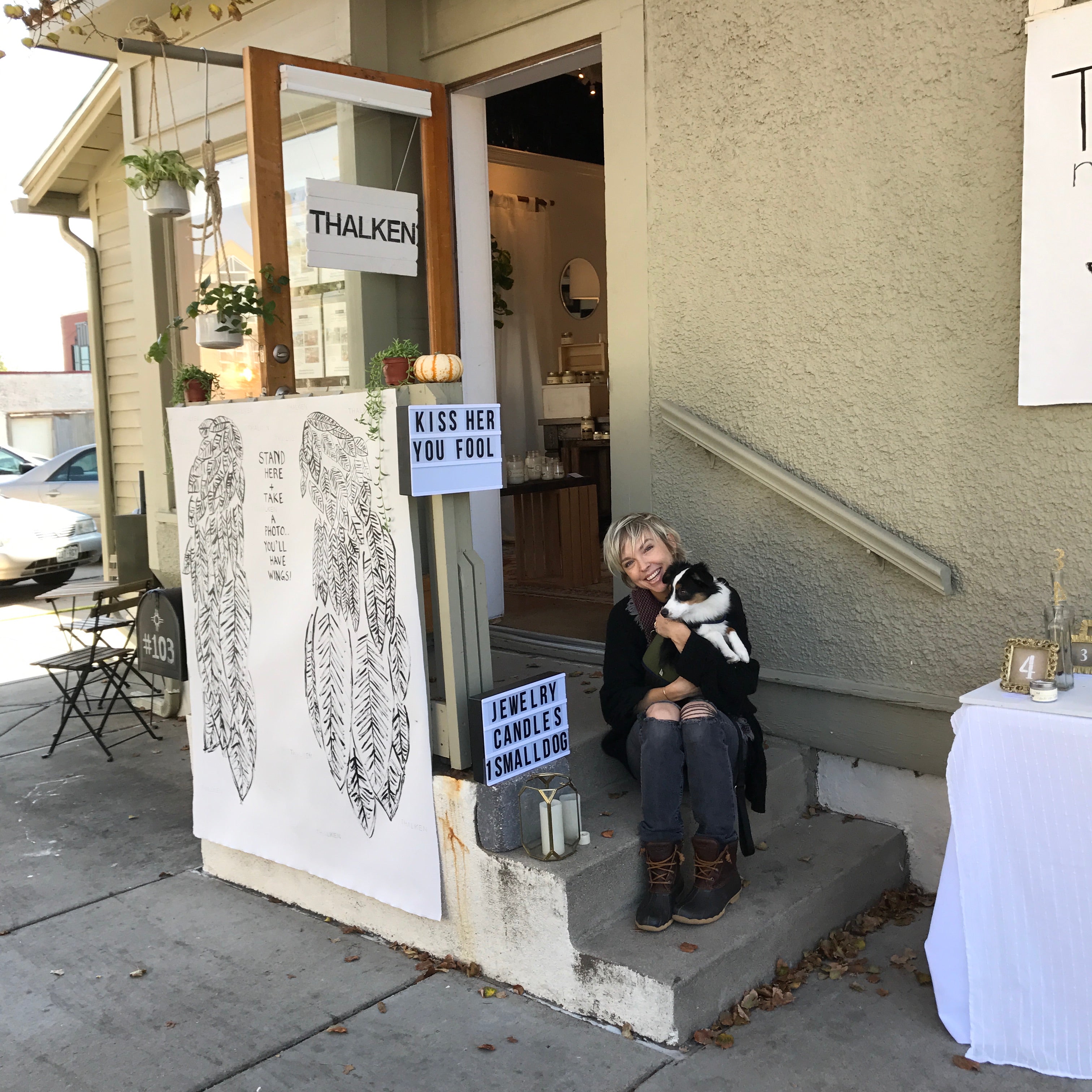 After the manifestation shown at the beginning of our About Us, William and Hana moved to Broomfield, Colorado. Their mission was to do as many markets and pop-ups as possible (and boy-oh-boy did they do a lot), while also searching for a commercial storefront that they could afford for Thalken. Within the first month, they came across what looked like an upcoming office space for rent on a cute little main street in Louisville, Colorado. After some digging, they discovered that the space wasn’t actually for rent, but the current tenant, by the name of Sloane, wouldn’t be opposed to sharing it. After some negotiations, this became Thalken’s first official storefront for the next eight months.