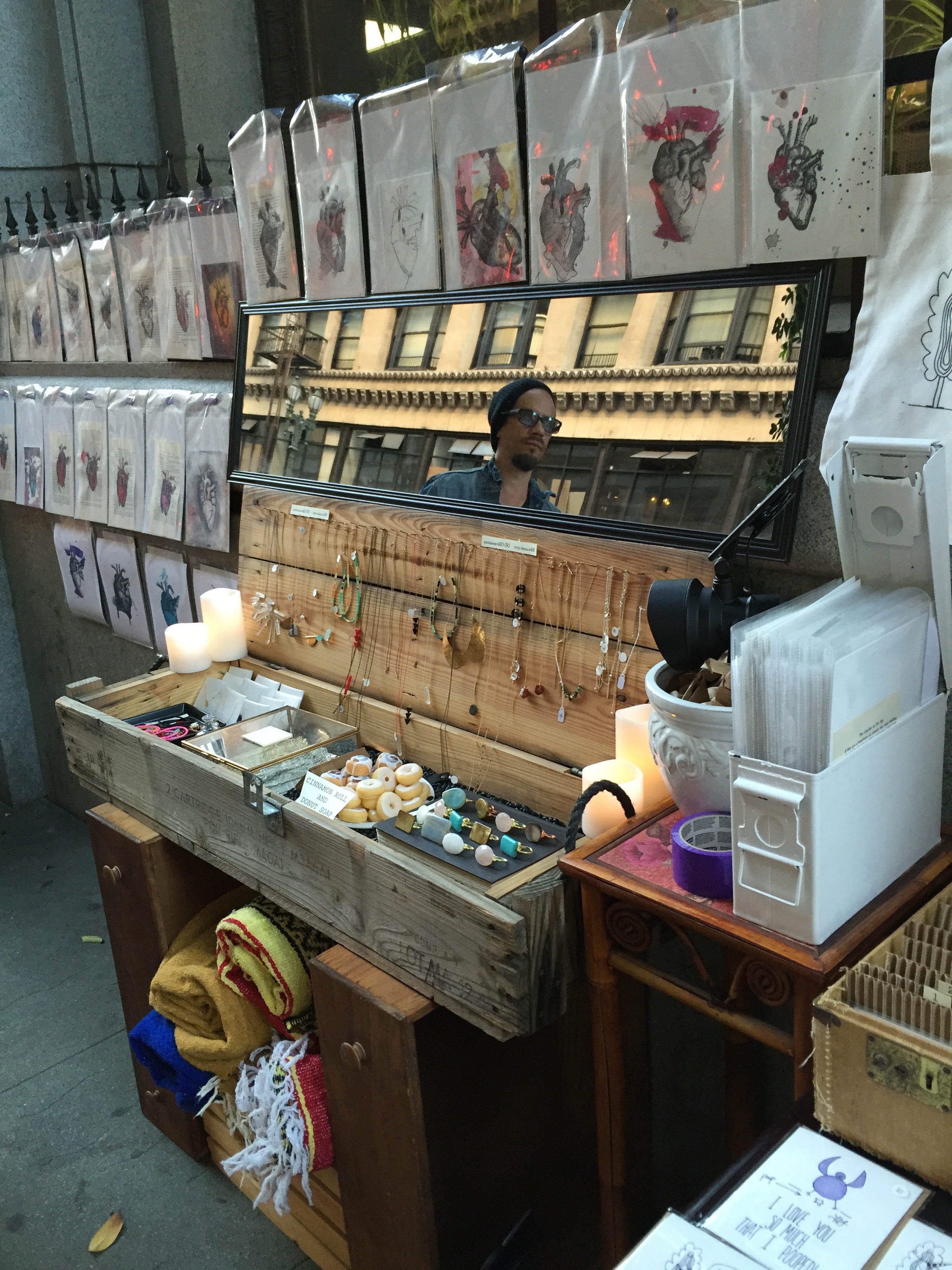 One of their first events together was Los Angeles Art Night Out. William’s truck was always packed with tents, tables, and display pieces—it was never empty because they were constantly moving from one event to the next. They did everything from the Pasadena Flea Market—where William would work at the bar until three or four in the morning, skip sleep, and drive with Hana for a 5 a.m. setup—to chocolate and art shows where Hana would occasionally play guitar and sing. They also participated in a private event where Hana sold jewelry while William sold his paintings and created art live.Eventually, they turned their apartment into a small pop-up shop for friends and family, filling the space with their art and handmade pieces.