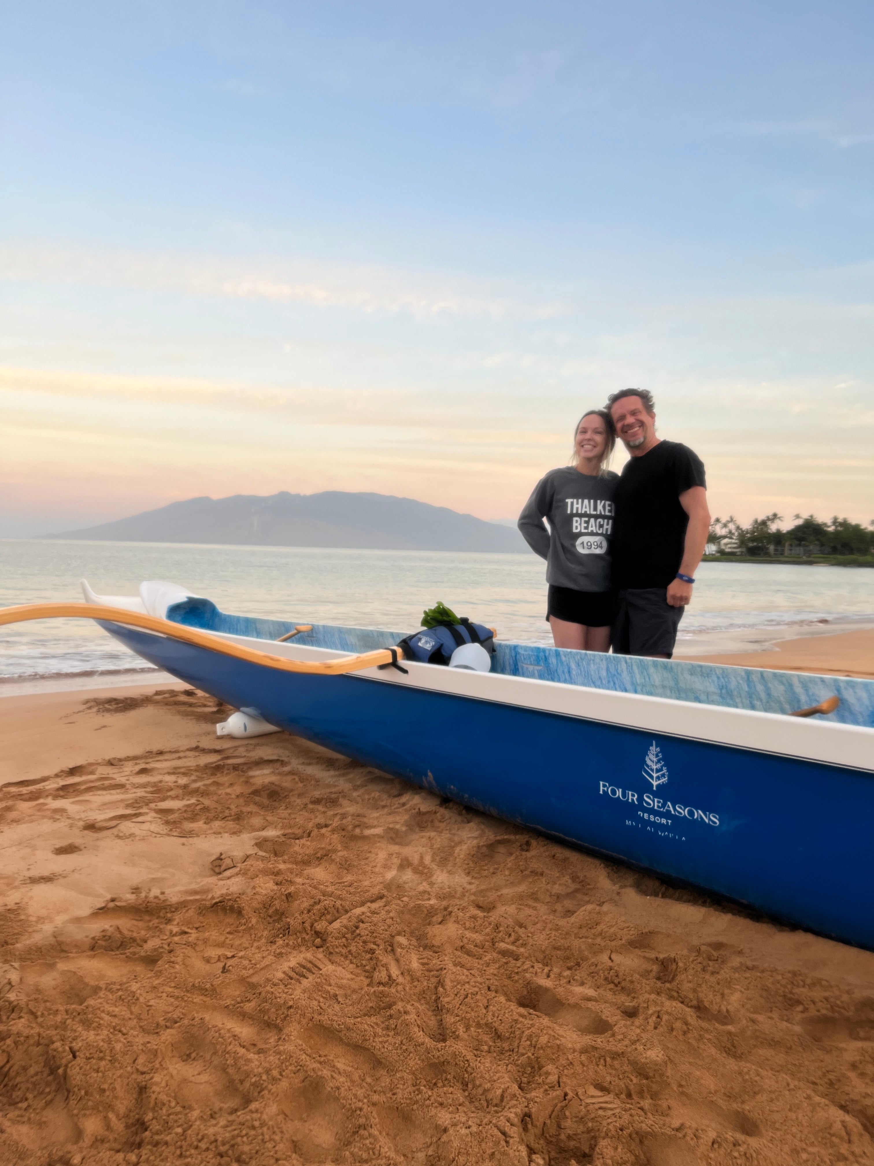 Our favorite part? The complimentary sunrise outrigger for guests. Just a few of us, a guide, and the ocean. He shared stories about the islands and briefly brought up a sea creature to show us—then gently returned it back to the ocean, unharmed.